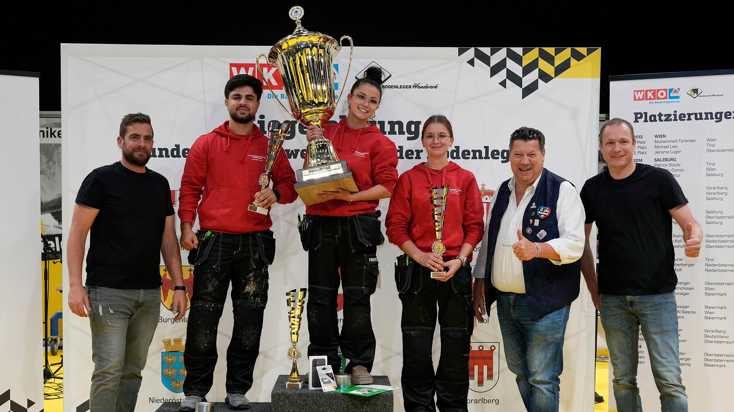 Dieser bedeutende Wettbewerb für den Bodenlegernachwuchs fand Anfang November im Rahmen der „i-Messe“ in Dornbirn statt. An zwei Wettbewerbstagen traten die 12 besten Bodenleger-Lehrlinge aus ganz Österreich gegeneinander an, um ihre Fähigkeiten und ihr Wissen zu demonstrieren. Die Herausforderungen waren vielfältig und anspruchsvoll, schnelles und sehr genaues Arbeiten war gefordert. Unter Zeitdruck mussten Fertigparkett, Linoleum und Teppichboden zugeschnitten, eingepasst und verlegt werden.